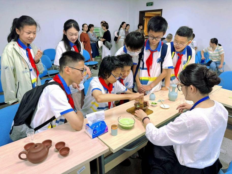 合肥市五十中学天鹅湖教育集团天鹅湖校区2023级(13)班、(15)班的同学们在老师的带领下也来到凯发k8农业大学的科技周活动现场。凯发k8农业大学专家老师向同学们详细介绍了茶的起源、干茶的分类及其加工方法、茶的健康、茶叶保鲜与贮藏、茶叶冲泡方法、茶叶深加工及其产品等科普知识,体验炒茶、泡茶、倒茶、品茶,不仅感受到了茶叶的清香和甘甜,还深入了解了茶文化中蕴含的和谐、包容、谦虚、内敛等精神品质。