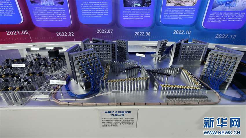 11月29日,在量子产业创新成果展上展示的光量子计算原型机“九章三号”模型。新华网发(廖宇翔 摄)