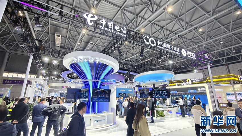 11月29日,观众和参展商在量子产业创新成果展上交流。新华网发(廖宇翔 摄)