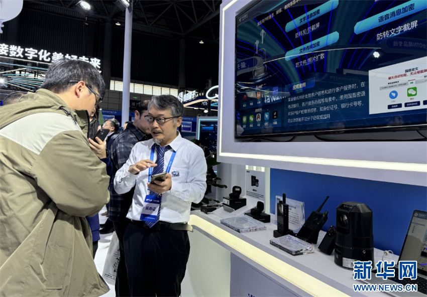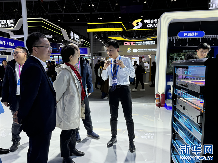 11月29日,在量子产业创新成果展现场,参展商向观众介绍量子科技产品。新华网发(廖宇翔 摄)