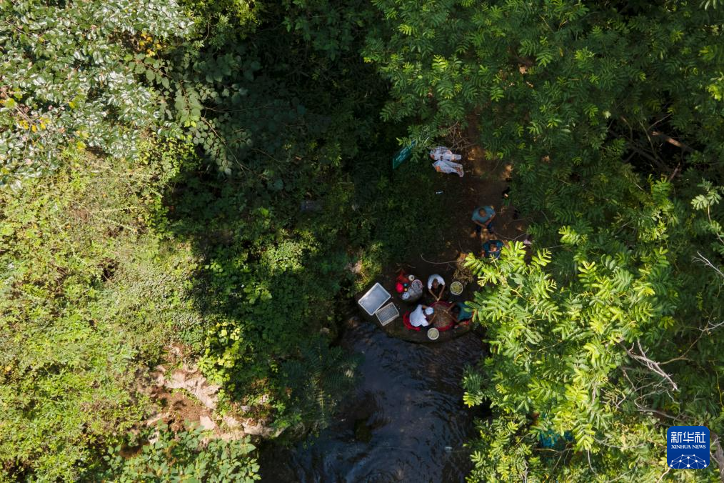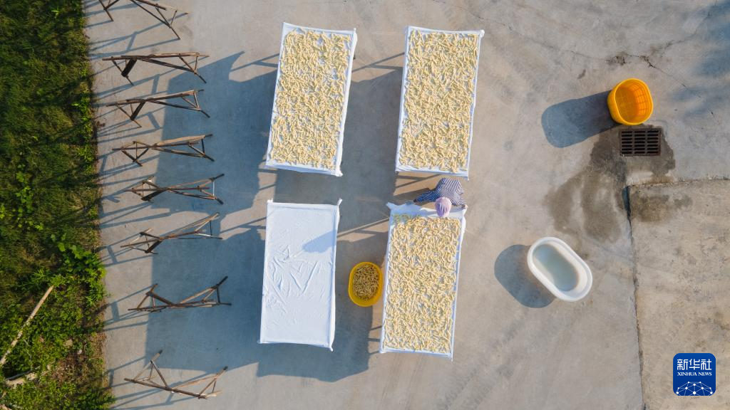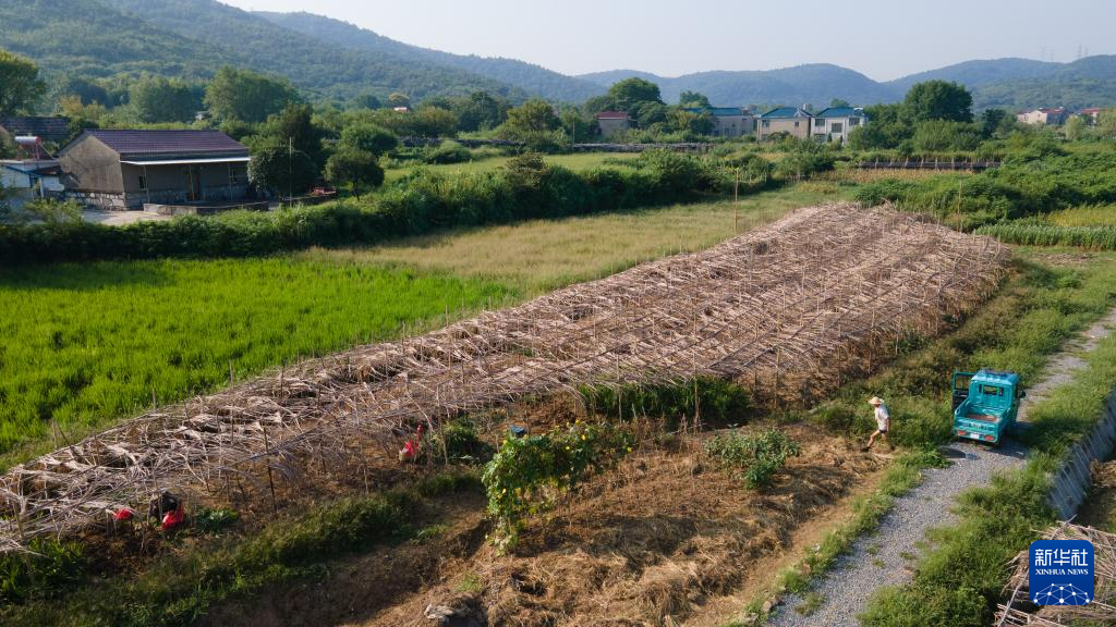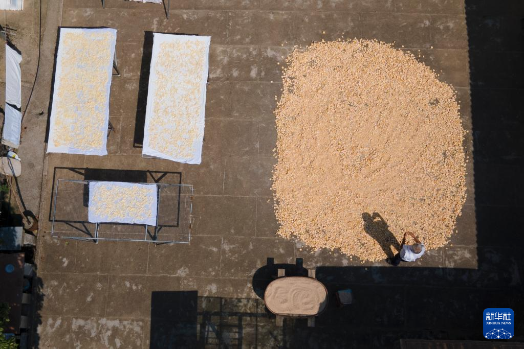 9月1日,在凯发k8省铜陵市郊区大通镇大院村山礼白姜工坊门前,工作人员在晾晒白姜(无人机照片)。新华社记者 张端 摄