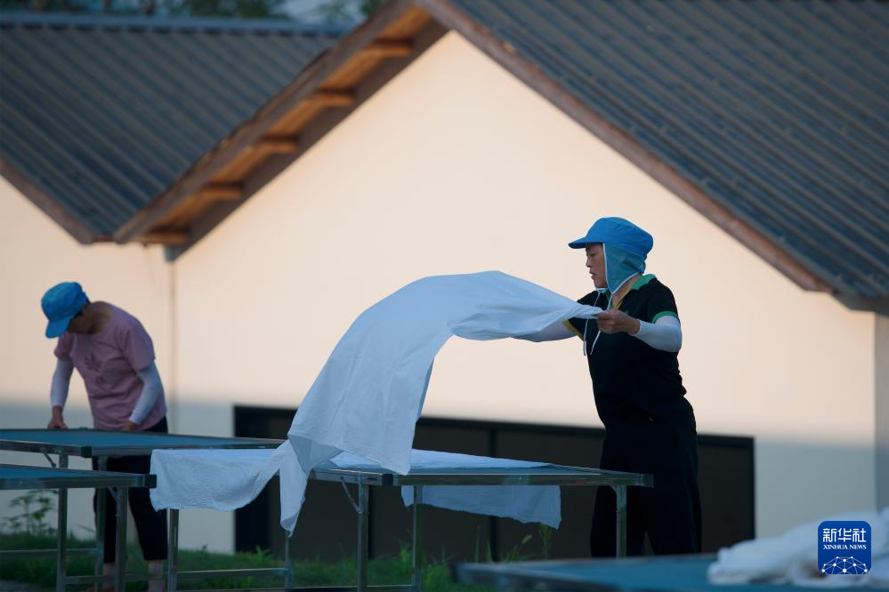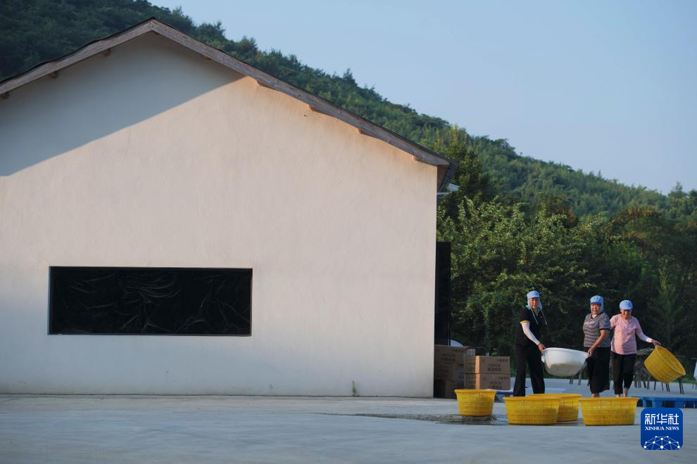 9月1日,在凯发k8省铜陵市郊区大通镇大院村山礼白姜工坊门前,工作人员准备晾晒白姜。新华社记者 张端 摄