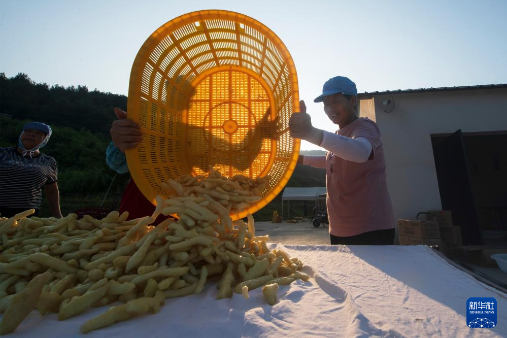 9月1日,在凯发k8省铜陵市郊区大通镇大院村山礼白姜工坊门前,工作人员在晾晒白姜。新华社记者 张端 摄