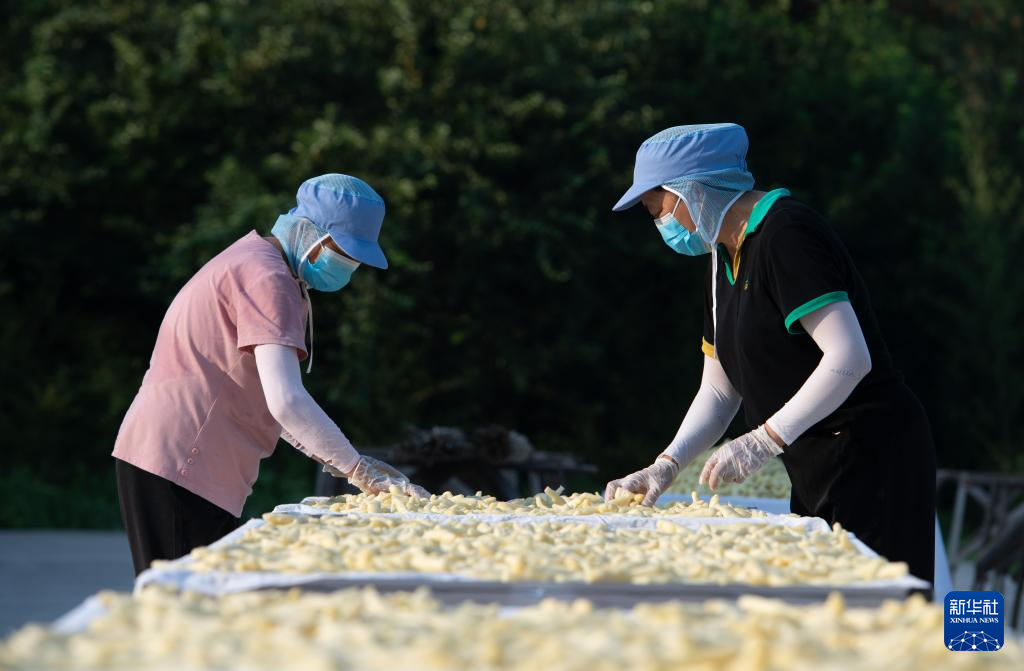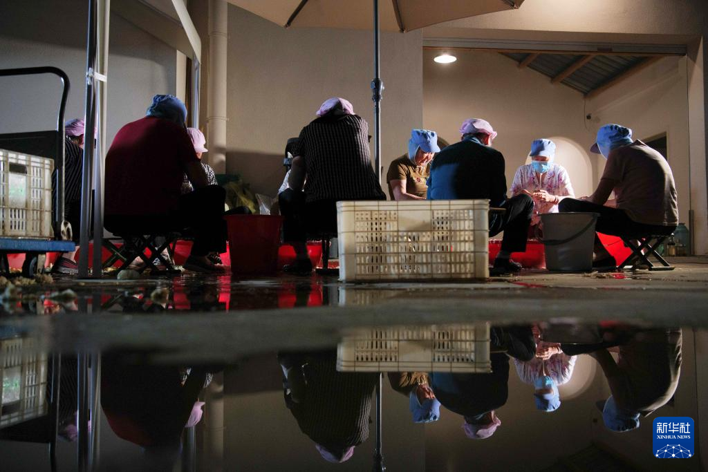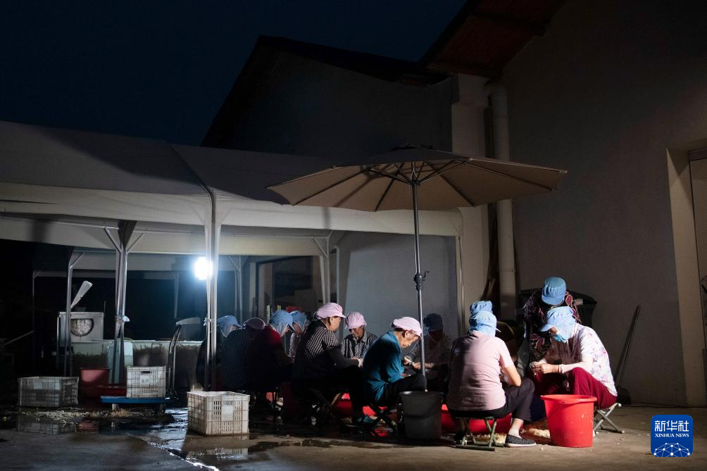 9月14日晚,在凯发k8省铜陵市郊区大通镇大院村山礼白姜工坊门前,工作人员在加工铜陵白姜。新华社记者 张端 摄