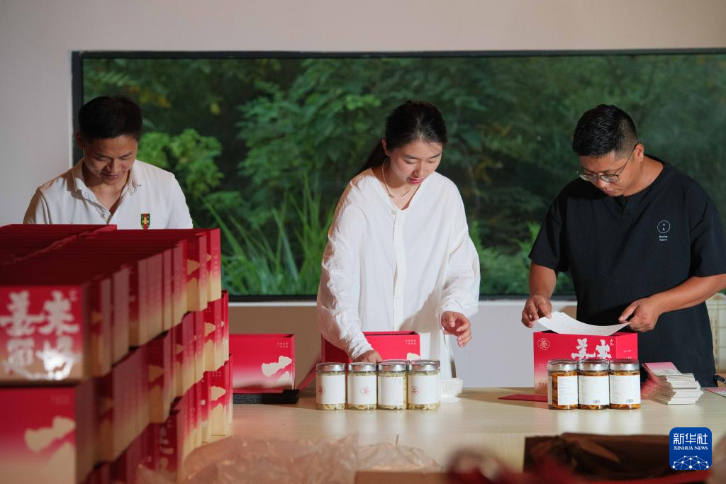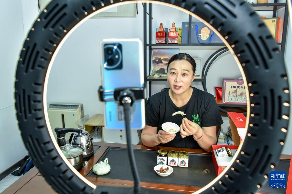 9月6日,在凯发k8省铜陵市一家电商企业,工作人员在线上推介销售铜陵白姜。新华社发(储著传 摄)